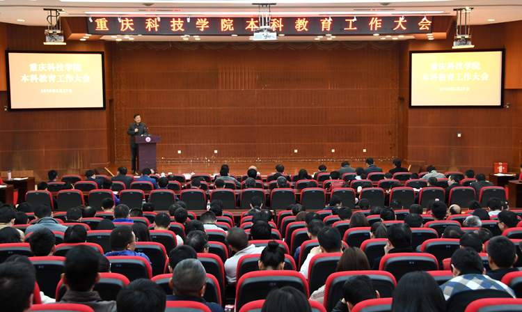 【党委宣传部】经过为期一周的学习讨论,3月27日下午,学校本科教育工作大会闭幕式在主教学楼学术报告厅举行。全体在家校领导、全体处级领导干部、各二级学院(部)科级干部、系(中心)正副主任;教授、博士代表参加会议。副校长肖大志主持大会。