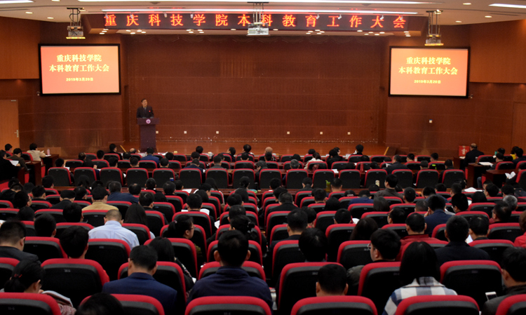 【党委宣传部】为适应新时代高等教育高质量发展的需要,开启一流应用型本科教育新征程,3月20日上午,学校本科教育工作大会在主教学楼学术报告厅隆重开幕。市委教育工委委员、市教委主任助理徐立出席会议并讲话,校长尹华川作报告。全体校领导、全体处级领导干部、各二级学院(部)科级干部、系(中心)正副主任;教授、博士代表参加会议。副校长肖大志主持大会。