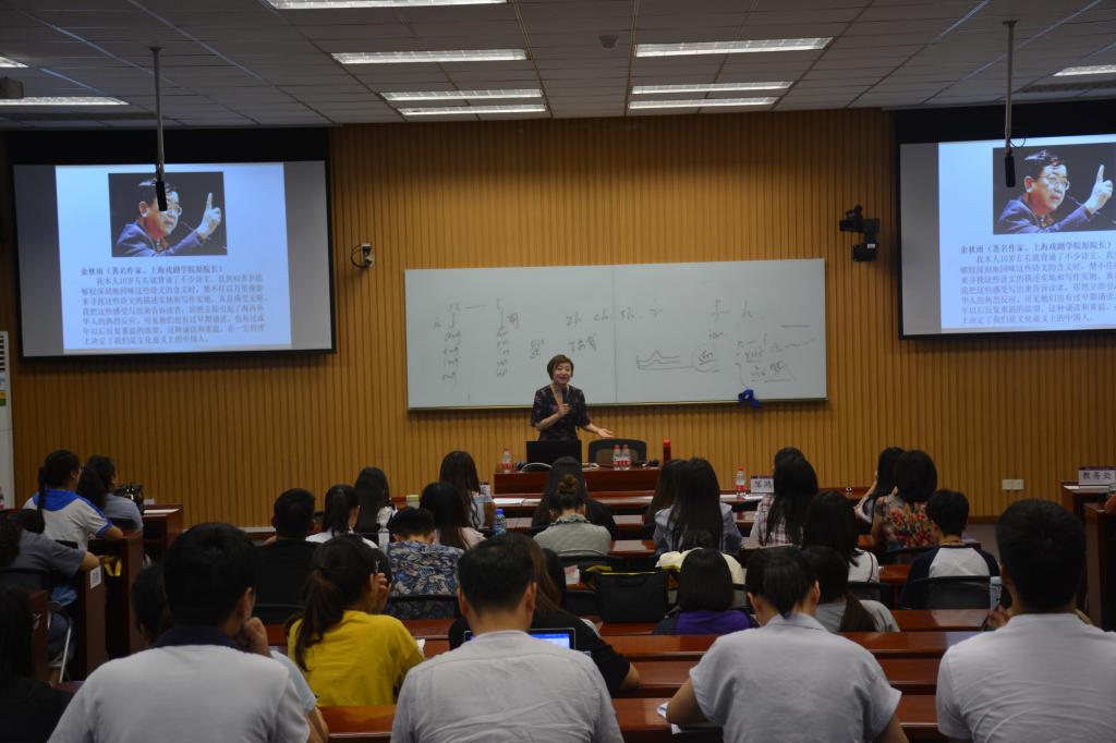 活动过程中,重庆师范大学涉外商贸学院表演艺术学院院长助理张琦作了题为“川渝地区普通话纠正方法分享”的报告。他从川渝两地发音与普通话发音之间的差距着手进行讲解,教授大家发音技巧。重庆广播电视集团(总台)都市频道主持人郎玉菡作了题为“语言表达”的讲座。她以《红楼梦》节选、《小桔灯》为例,着重从气息、声调、情景再现等方面传授了诵读技巧。活动现场气氛热烈,师生在专家的带领下热情吟唱了《长江之歌》,感受了诵读的魅力。