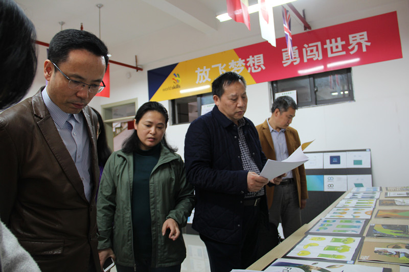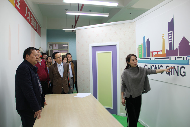 基地师生对校领导莅临指导表示热烈欢迎。参观过程中,张劲向大家介绍了学员们日常学习生活及训练情况,油漆与装饰项目负责人李莉老师向大家展示了重庆市预选赛中各位选手的优秀参赛作品及技术要点,大赛项目指导老师苏琼英也向大家展示了重庆市预选赛后各位选手最新的培训成果。在平面设计项目基地,校领导一行人认真浏览了学员们的设计作品,鼓励大家再接再厉,争取再创辉煌。