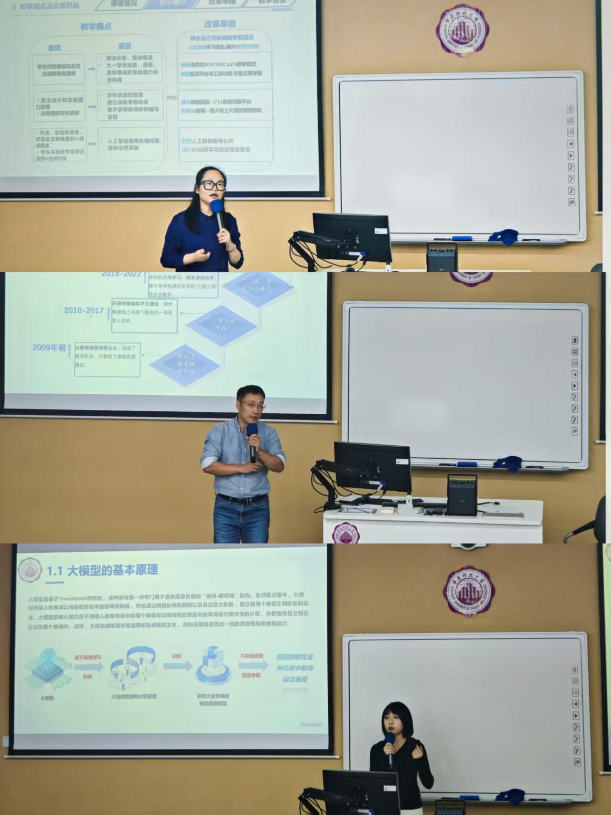 计算机科学与工程学院熊茜老师围绕“AI赋能《数据结构》课程教学的探索与实践”主题,分享了针对学生学习痛点,引入讯飞星火“码上”编程智辅平台,综合运用通用大模型工具,探索AI赋能程序设计类课程教师精准化教学和学生个性化学习的有效路径。马克思主义学院帅建强老师以“AI赋能‘三链六翼’思政课建设思考及探索”为题,介绍了整合线上图谱与线下资源,依托智慧平台构建基础资源库、个性资源库和动态资源库,并通过AI助教实现全流程数据驱动教学与多维评价体系,推动思政课教学从“经验驱动”向“数据赋能”转型的实践成果。机械与智能制造学院周璎珞老师以“会用巧用活用——AI大模型在教学实践中的创新应用”为主题,构建了“会用——巧用——活用”三阶路径,展示了提示工程生成教案、学科案例激活情境认知,以及基于“智能体——知识图谱”架构实现学情诊断、精准推送与智能批改的闭环治理模式。